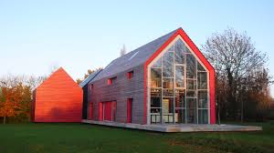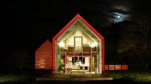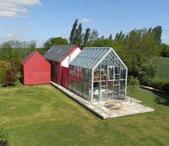 The progression from road past annexe and garage, to house, glasshouse and then on to garden are a logical sequence. The bedroom of the house is modular timber cassette construction, the living room is using normal curtain wall glazing system. The annexe and garage are constructed from the modular timber cassette.