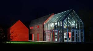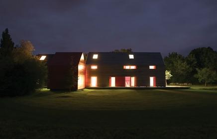 The Sliding House, in Suffolk, England, features a sliding structure that fits over the static main house, guest annexe and greenhouse. The brief from client was a self-build house to retire to in order to grow food, entertain and enjoy the landscape. Each element of the composition is carefully proportioned in relation to frame, window and wall sizes. All elements were prefabricated to be assembled on site, except groundworks, internal joinery fixtures and external surfaces, which were in situ. As it moves, the sliding element creates shifting outdoor living areas between the static elements as well as altering views, lighting conditions and the sense of enclosure inside the house.
